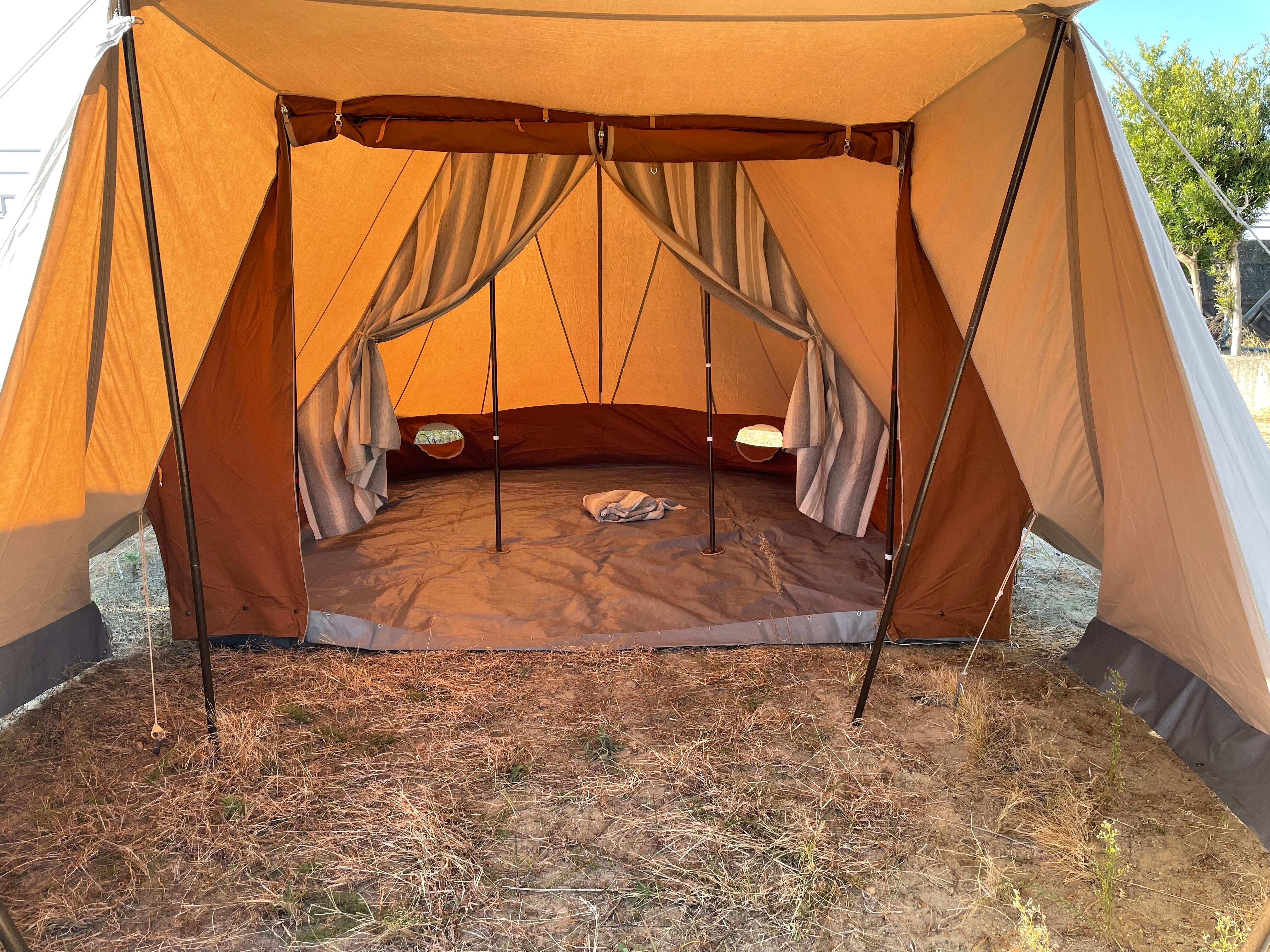 最も有名なアルバトロスより、一回り小さいサイズですが、内部のポールが一本多いため、非常に広々と感じます。2〜3人向けです。1970年代の幕です。